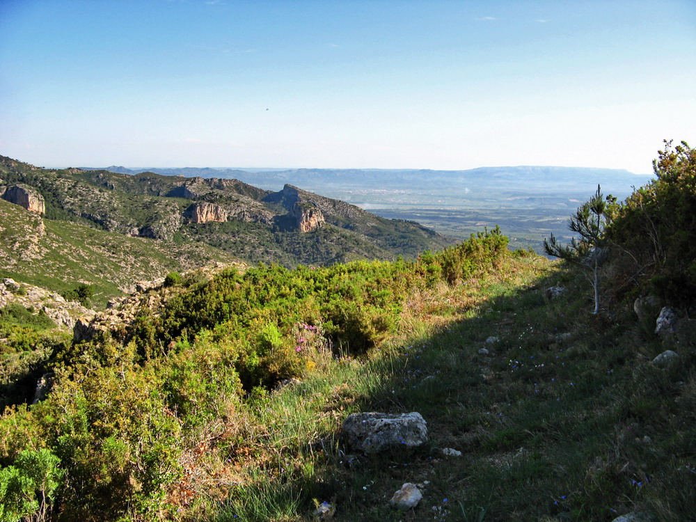 Desde el collado de al lado podemos ver la otra vertiente de las montañas de Cardó: la plana de Móra, el Priorat y el Montsant...